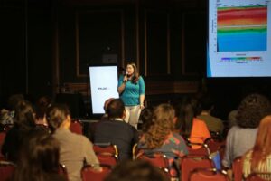 En paralelo a estos simposios, la Dra. Céline Lavergne también marcó presencia en la modalidad presentación oral libre, con su trabajo «From the glacier to the Pacific Ocean: Aquatic microbial communities in the Aconcagua watershed, Valparaiso region» (Del glaciar al océano Pacífico: Comunidades microbianas acuáticas en la cuenca del Aconcagua, región de Valparaíso). Este estudio se enmarca en el Fondecyt de Iniciación N° 11201072 y el proyecto de cooperación bilateral entre Chile y Francia, ANID PCI ECOS 210007. Los inéditos resultados presentados dieron cuenta de la diversidad microbiana activa en el agua del río Aconcagua, abarcando desde el glaciar Juncal (Parque Andino Juncal) hasta el océano Pacífico, describiendo la composición de lo que se califica como un patrimonio microbiano de la cuenca.