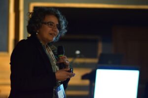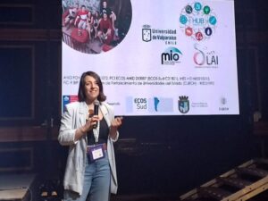 Adicionalmente, la Dra. Aguilar presentó el póster «Microbioma del suelo superficial en un gradiente de tres profundidades en las laderas norte y sur del Parque Nacional La Campana», en representación de su autora, Carolina Quinteros, estudiante del Doctorado Interdisciplinario en Ciencias Ambientales de la UPLA. Este trabajo se orientó a determinar la relación entre la composición y estructura de las comunidades microbianas del suelo, y los factores bióticos y abióticos del paisaje presente al interior del parque, perteneciente a la reserva de la biosfera La Campana-Peñuelas.