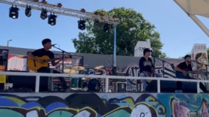 Los estudiantes Marcelo Ramos, Matías Maldonado y Benjamín Correa, motivados por transmitir la alegría musical de la bohemia porteña a través de boleros y valses peruanos, compartieron sus talentos en guitarra, percusión y voces.