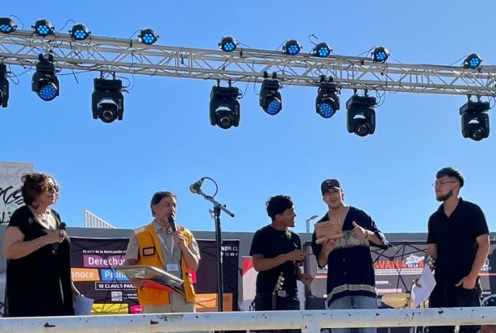 «En el contexto de la celebración de los 75° años de la Declaración Universal de los Derechos Humanos, realizamos en la ciudad de Talca un evento artístico-cultural para toda la comunidad maulina, que se enfocó en tres principales valores: tolerancia, respeto y diversidad. En la oportunidad, una decena de bandas musicales, grupos de danza y poesía, se presentaron. En ese sentido, destaco el interés de los estudiantes de Pedagogía en Educación Musical de la Universidad de Playa Ancha por ser parte de esta celebración, en la que, de manera voluntaria, aportaron con su música y calidad de interpretación, logrando una muy buena recepción de la audiencia», afirmó el jefe regional INDH del Maule y profesional titulado en esta casa de estudios, Víctor Ipinza Silva.