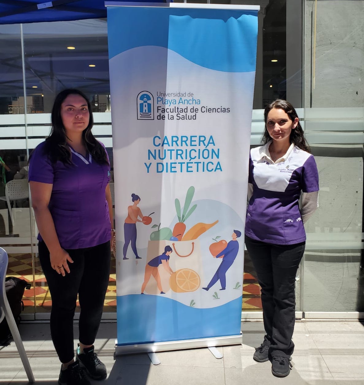 Se trata de la académica Natalia Muñoz Palma, coordinadora del Diplomado Nutrición y la estudiante Valentina Araya de la carrera de Nutrición y Dietética, quienes respondieron inquietudes de las personas que asistieron a la actividad, que se desarrolló en la Casa Central de la mencionada universidad.