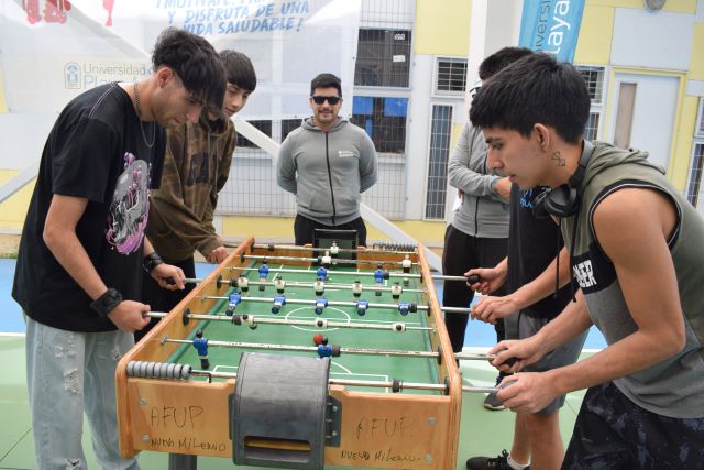 Después del tenis de mesa, el campeonato de taca-taca prendió en el patio RecreActivo de Casa Central en el campus Valparaíso.