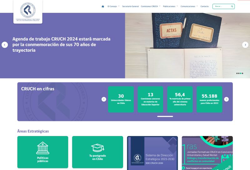 En el marco de la conmemoración de los 70 años del Consejo de Rectoras y Rectores de las Universidades Chilenas (CRUCH), que se cumplen el 14 agosto de este año, la institución presentó oficialmente la renovación de su sitio web (www.consejoderectores.cl). La plataforma, que cuenta con una nueva estructura, contenidos y diseño gráfico, busca comunicar de mejor forma el quehacer del CRUCH, mejorar la experiencia de las y los usuarios, y expandir su alcance a un público más amplio.