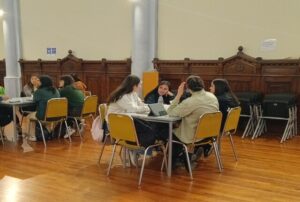 El formato consistió en generar mesas de conversación, las que, en torno a un café y galletas, respondieron y dialogaron en torno a ciertas preguntas centrales. “Fue una instancia súper enriquecedora, tanto en conocimiento, como al momento de compartir, porque teníamos que hablar sobre algo tan común entre nosotras las personas y seres humanos. Un tema quizás tan controversial para algunos es como lo que nos une”, expresó Anastasia Aros, estudiante de Terapia Ocupacional UPLA.