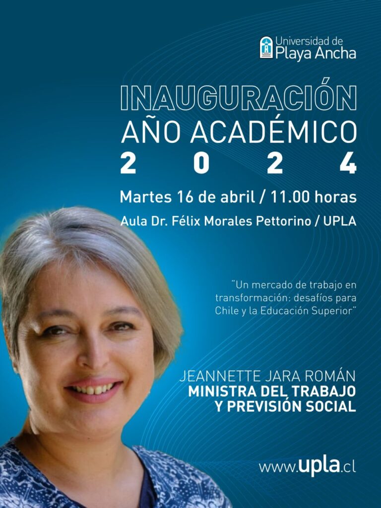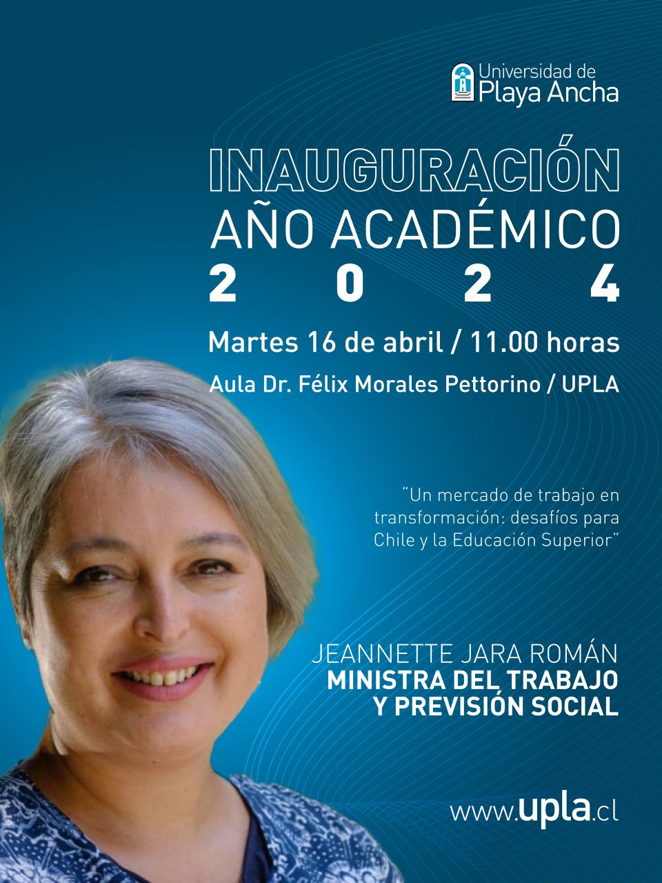 “Un mercado de trabajo en transformación: desafíos para Chile y la Educación Superior” se denomina la Clase Magistral que dictará la Ministra del Trabajo y Previsión Social, Jeannette Jara Román, en el marco de la Inauguración del Año Académico 2024 de la Universidad de Playa Ancha.