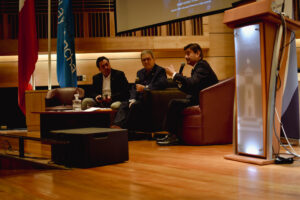 “Los principales desafíos, parafraseando a nuestro invitado, son que falta mucha lectura en la formación; existe un individualismo latente. La inmediatez juega un rol fundamental en la forma de acceder a información de los nativos digitales, porque ellos están familiarizados con nuestra tecnología. No imagino a un o una estudiante, o a cualquier ciudadano o ciudadana, leyendo El Mercurio en sus cuatro o cinco secciones en los tiempos actuales. ¿Y qué hace la mayoría? Lee un diario digital rápidamente y, además, puede opinar. Entonces, el concepto de democratización de los medios, creo que hay que revisarlo, porque como ciudadano tengo la oportunidad de comentar una noticia y ejercer mi derecho a difundir información con mi celular, por ejemplo, ya que puedo captar un accidente o un hecho delictual y lo puedo escribir. Entonces, hay que matizar el tema”, dijo el decano.