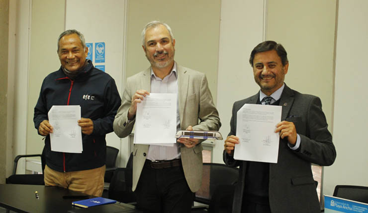 La ceremonia contó con la firma del rector de la casa de estudios, Carlos González Morales; del Gerente General de EFE Valparaíso, Miguel Saavedra Lavanal; y del Gerente de Operaciones Ferroviarias, EFE Valparaíso, Juan Rodó Rodas.