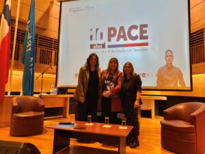 Las tres profesionales de la educación repasaron la llegada de esta política pública al establecimiento y recordaron, para las y los presentes, los desafíos que tuvo la instalación del programa en cada establecimiento, las primeras impresiones de quienes eran encargados y encargadas PACE y resultados positivos de las intervenciones y acompañamiento del programa a lo largo de estos 10 años.