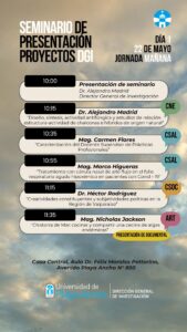 Dos días de divulgación de resultados de investigación se llevarán a cabo este próximo 22 y 23 de mayo en el marco del “Seminario de presentación de proyectos internos de la Dirección General de Investigación 2020-2023”, instancia organizada por la Red de Apoyo a la Investigación, que reunirá a académicos y académicas de seis facultades de la Universidad de Playa Ancha, en el Aula Dr. Félix Morales Pettorino, para compartir sus hallazgos con la comunidad universitaria.