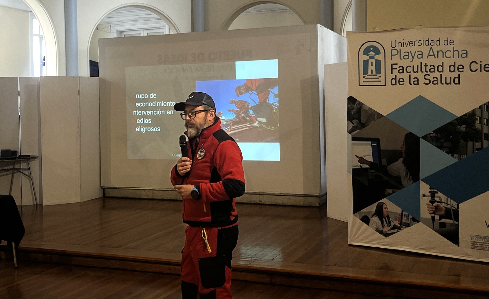 Entre los expositores de la jornada hubo profesionales (médicos y enfermeros y enfermeras) que se desempeñan en distintos establecimientos de salud pública; docentes de nuestra institución, e integrantes del grupo GRIMP del Cuerpo de Bomberos de Valparaíso. Uno de ellos fue Jaime Aréstegui Carvajal, quien valoró que la Universidad genere este tipo de espacios para compartir sus experiencias.