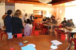 El Café Pedagógico es una instancia de reunión entre docentes y directivos de las facultades con profesionales de la Unidad de Acompañamiento Estudiantil y Unidad de Acompañamiento Docente que tiene dos objetivos: en primer lugar, se presentan los resultados del Diagnóstico Institucional 2024, instrumento aplicado a las, les y los estudiantes que ingresaron a primer año para que coordinaciones y direcciones de carrera puedan conocer el perfil de estudiantes de la cohorte 2024. Aquí también se promueve la reflexión sobre el rol y perfil del docente, basado en datos aportados por otras Unidades y/o Direcciones de la Universidad.