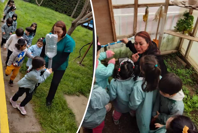 El proyecto que compartió fue el realizado con los niños y niñas en el uso eficiente del agua mediante la creación de un prototipo de riego sustentable. La iniciativa invitó a los infantes a explorar este elemento vital y responder lo que sabían de éste.