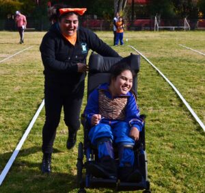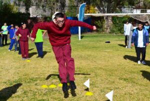 La alegría, el entusiasmo y la sana competencia marcaron esta jornada dedicada a la realización de diversos juegos tradicionales y de atletismo adaptados, entre estos el lanzamiento del balón hacia atrás, botar tarros, salto largo con carrera, lanzamiento de la jabalina y carreras con relevo.