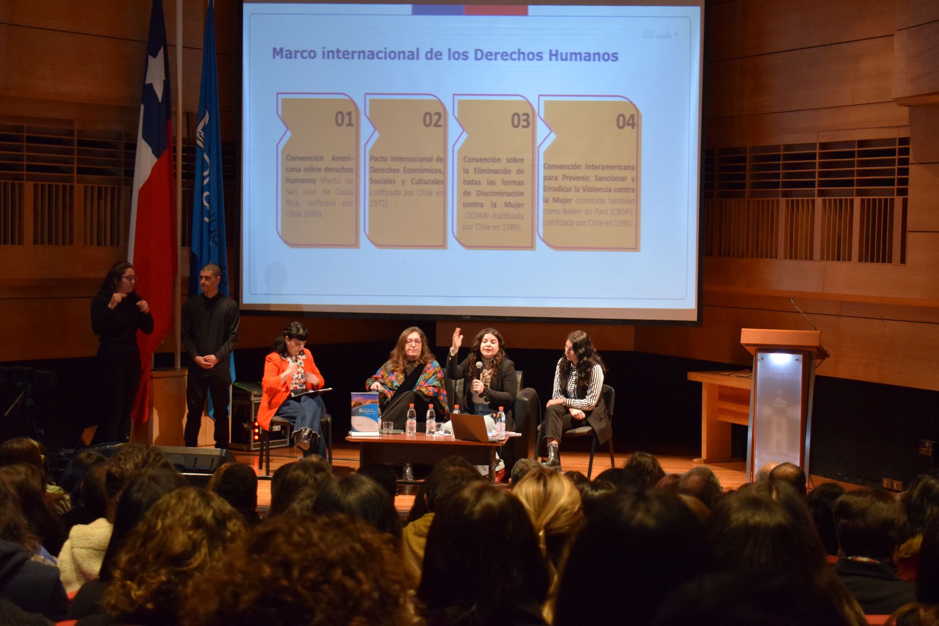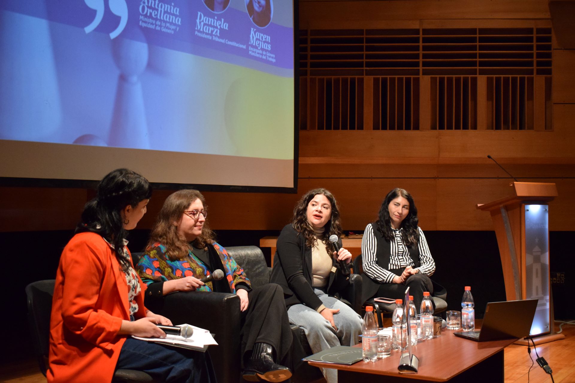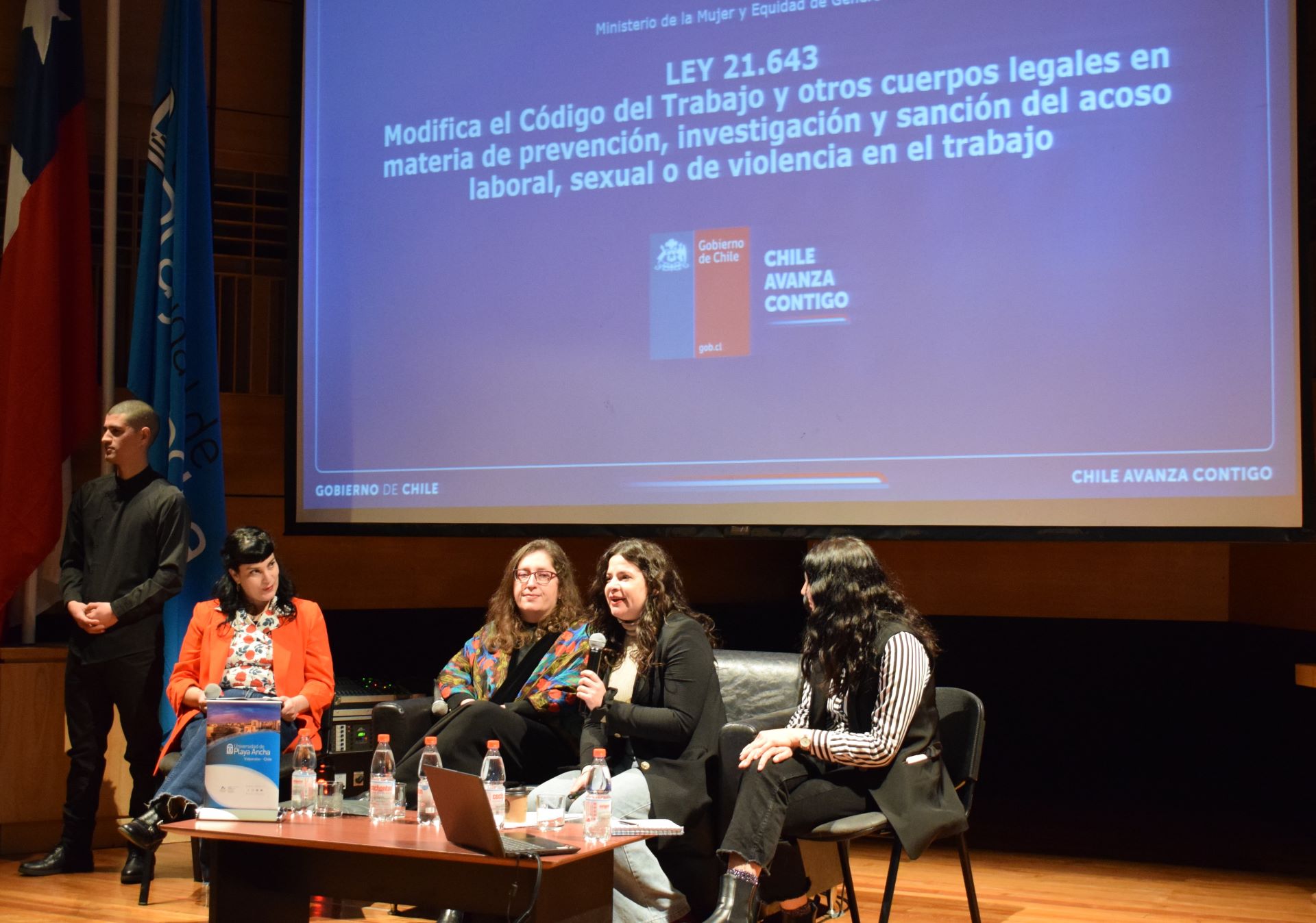El Aula Dr. Félix Morales Pettorino de la UPLA reunió a autoridades regionales y representantes de la comunidad universitaria del Consejo de Rectores de Valparaíso (CRUV) y de servicios públicos que asistieron a escuchar a la ministra de la Mujer y Equidad de Género, Antonia Orellana Guarello; a la presidenta del Tribunal Constitucional, Daniela Marzi Muñoz; y a la encargada de Género del Ministerio del Trabajo y Previsión Social, Karen Mejías, quienes dieron cuenta de los alcances de esta nueva normativa que comienza su vigencia este 1 de agosto.