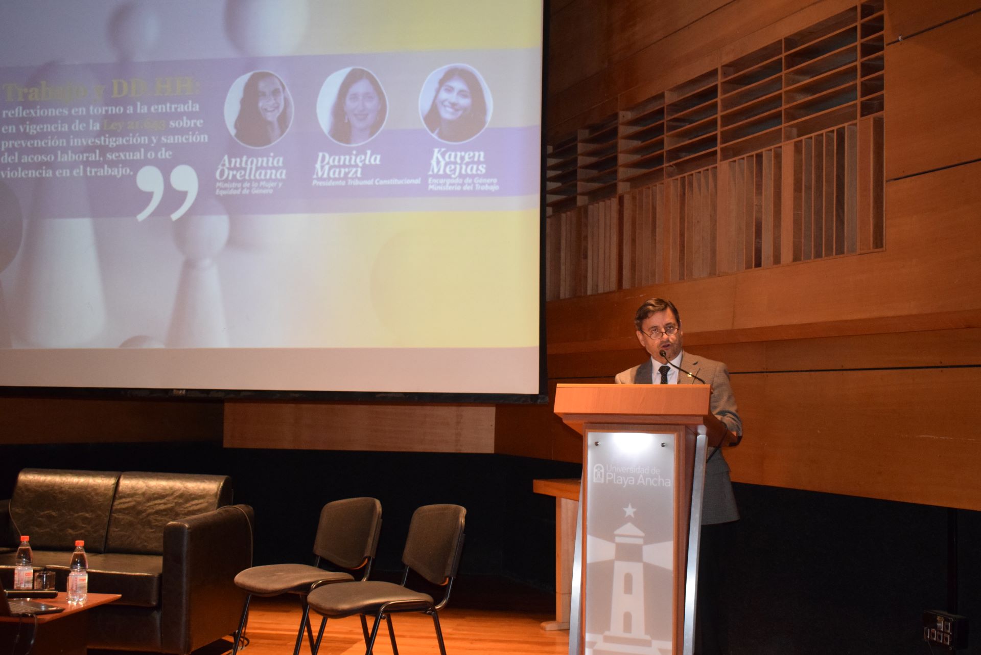 Respecto a este punto, aseveró que uno de ellos, es el conocimiento de la norma. “Cómo puedo reclamar algo si no conozco, si está permitido o no en la Ley y, por lo tanto, todas estas actividades lo que nos permiten es a mantener en la discusión pública: cuáles son los conceptos fundamentales del acoso, la discriminación y la violencia en el trabajo, cuáles son los cambios. Por ejemplo que ahora se incluyan, los medios digitales que forman parte hoy fundamental de la vida laboral y de la relación dentro de nuestros grupos de trabajo, o la nueva categoría de violencia laboral, que se vincula con terceros que no son parte de la organización, de la empresa o de la institución. Así que valoramos y agradecemos mucho a la Universidad de Playa Ancha, a su Rector y a la Presidenta del Tribunal Constitucional por permitirnos esta instancia”, subrayó la Ministra.