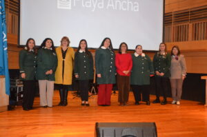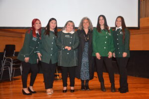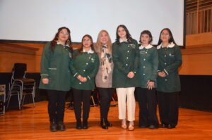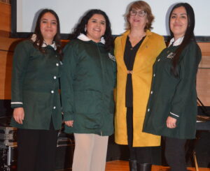 Hicieron entrega de las insignias las profesoras Ana María Barros Hoffmann, Sandra Navarro Vásquez, Daysi Reinoso Salinas, Viviana Quintero Yévenes y Sandra Pérez Lisboa.