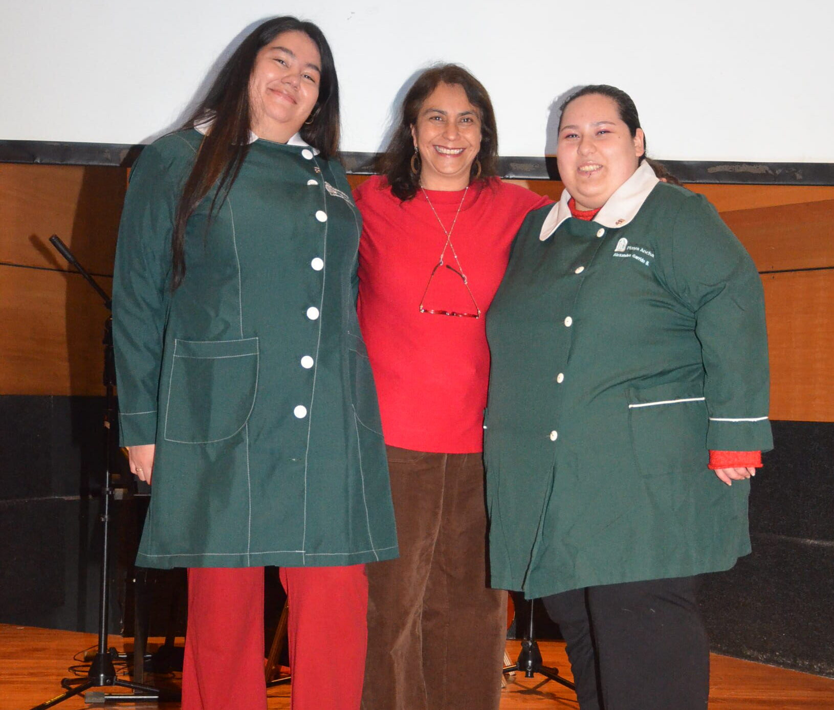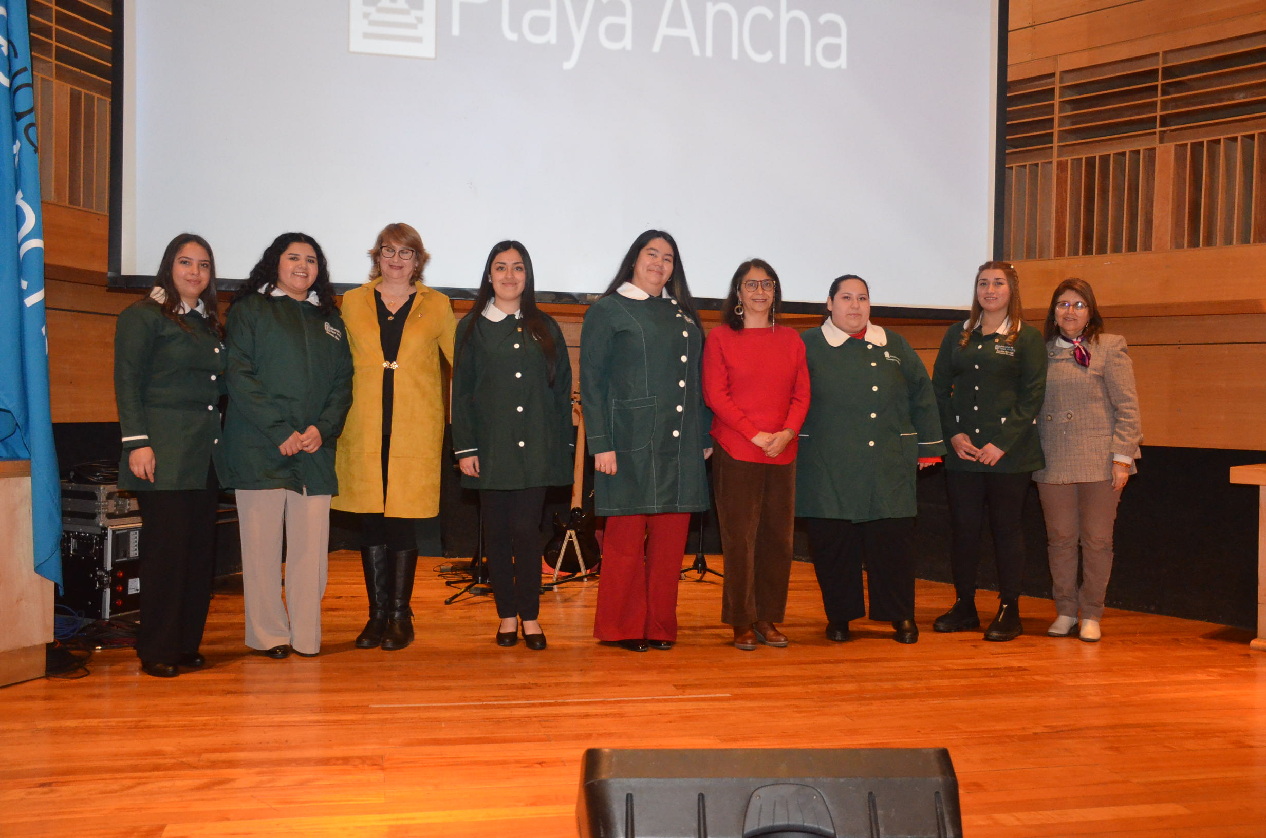 Hicieron entrega de las insignias las profesoras Ana María Barros Hoffmann, Sandra Navarro Vásquez, Daysi Reinoso Salinas, Viviana Quintero Yévenes y Sandra Pérez Lisboa.