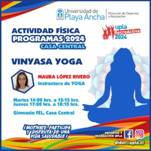 Desde esta semana se retoma en Casa Central el taller de Vinyasa Yoga, que organiza la Dirección de Deportes y Recreación (DIDER), dependiente de la Dirección General de Desarrollo Estudiantil, para los integrantes de la comunidad UPLA y sus familiares.