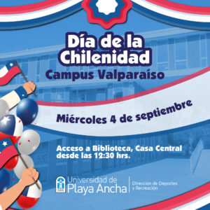 Empezó septiembre y la Dirección de Deportes y Recreación (DIDER), dependiente de la Dirección General de Desarrollo Estudiantil, invita a la comunidad UPLA a participar en el «Día de la Chilenidad campus Valparaíso«, el cual se desarrollará en el acceso a Biblioteca en Casa Central .