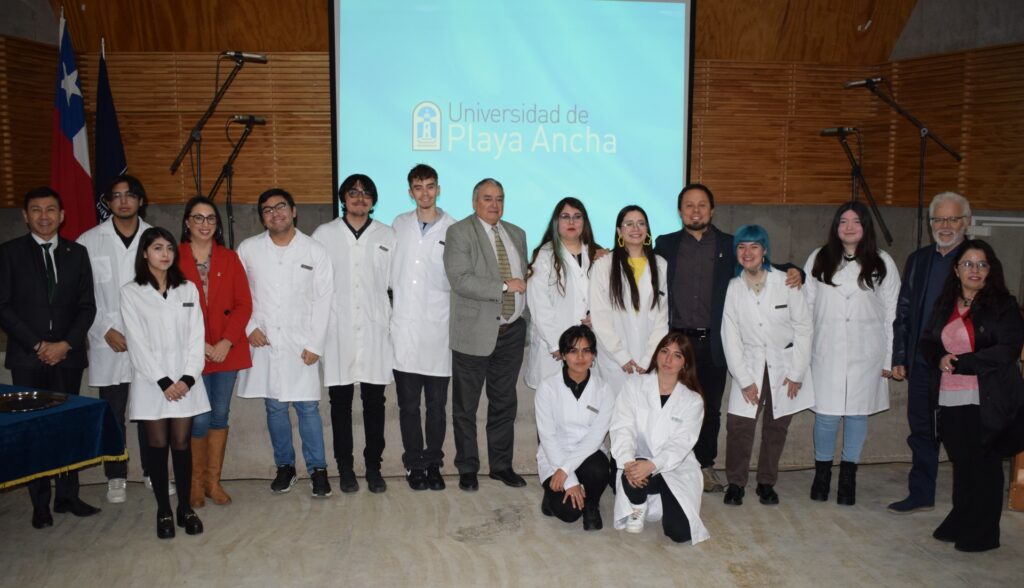 Durante la ceremonia, los directores de carrera de Pedagogía en Química y Ciencias, Dra. Macarena García Morgado, de Pedagogía en Biología y Ciencias, Dr. Jorge Zamorano Miranda y de Pedagogía en Física, Mg. Nicolás Fernández Astudillo, colocaron en la solapa de los delantales de los estudiantes, la piocha con sus nombres y el faro de la institución, que los iluminará en esta nueva ruta.