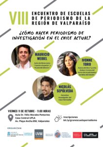 Esta nueva versión, reunirá a periodistas y estudiantes de las principales universidades de la región, para reflexionar y dialogar en torno al cuestionamiento «¿Cómo hacer Periodismo de Investigación en el Chile actual?». Para ello, la oportunidad contará con la participación de Mauricio Weibel Barahona,autor de libros como «Traición a la Patria» y «El País del Silencio»; Ivonne Toro Agurto, autora del libro «La niña Ámbar: Crónica del horror de un psicópata y las fallas del Estado»; y de Nicolás Sepúlveda Gambi, periodista investigador del «Caso Hermosilla».