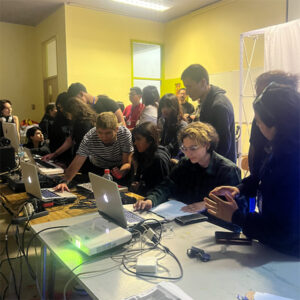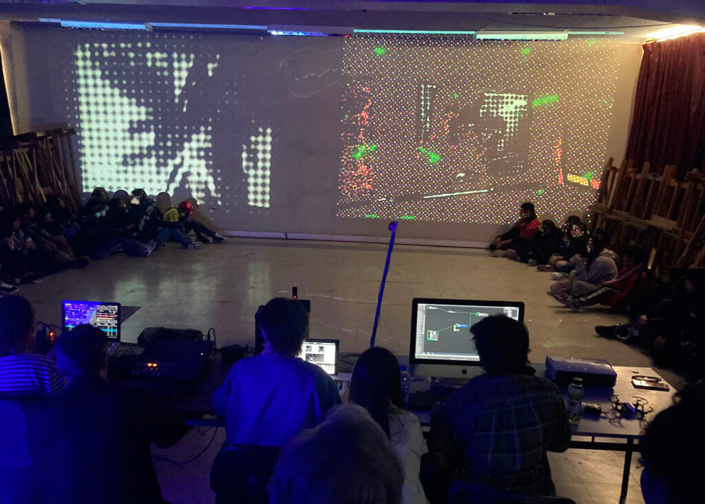La visita educativa y pedagógica de las y los alumnos del Colegio Cerro Guayaquil culminó con una presentación interactiva dirigida por el académico Juan Zúñiga, quien presentó un espacio inmersivo, performático, visual y sonoro. Este espacio fue instalado y operado por estudiantes avanzados de las carreras de Licenciatura en Arte y de Pedagogía en Artes Plásticas, donde los visitantes exploraron ambientes visuales sonoros, multimediales y aprendieron sobre la producción de contenidos educativos y culturales en nuestra Facultad.