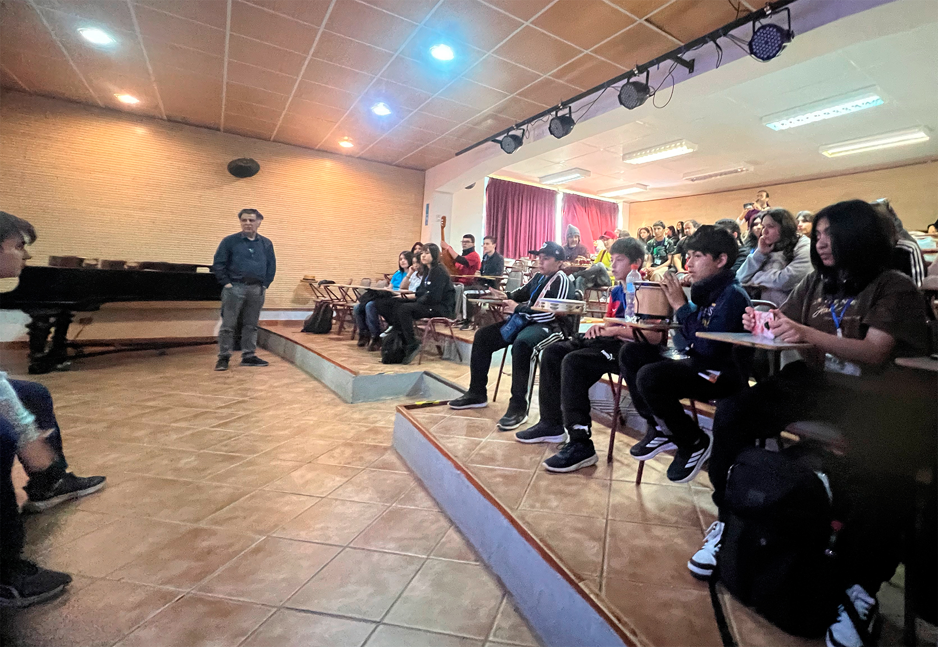 Alrededor de las nueve de la mañana la delegación, a cargo de cuatro docentes de las áreas de música, danza y artes visuales, fue recibida por el decano Alberto Madrid Letelier, quien valoró esta actividad de vinculación en el sentido del fortalecimiento de lazos entre los estudiantes UPLA y la comunidad educativa de Monte Patria. “Estamos convencidos de que esta experiencia será altamente enriquecedora para todos y reconocemos profundamente la oportunidad de compartir nuestro entorno académico y creativo con ustedes. Valoramos además el esfuerzo que realizó la delegación al viajar a Valparaíso desde la madrugada”, expresó.