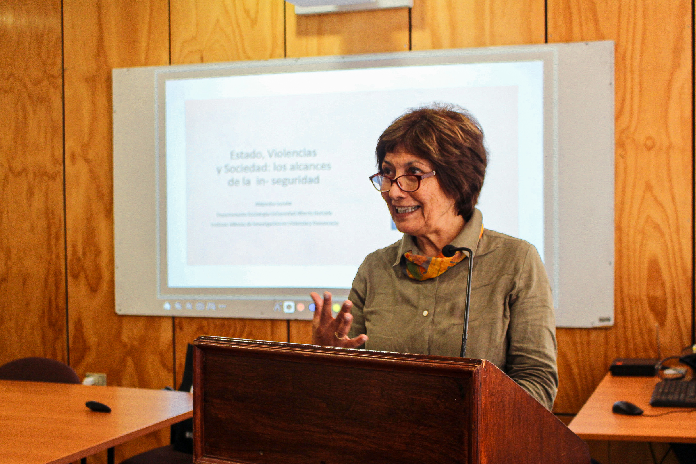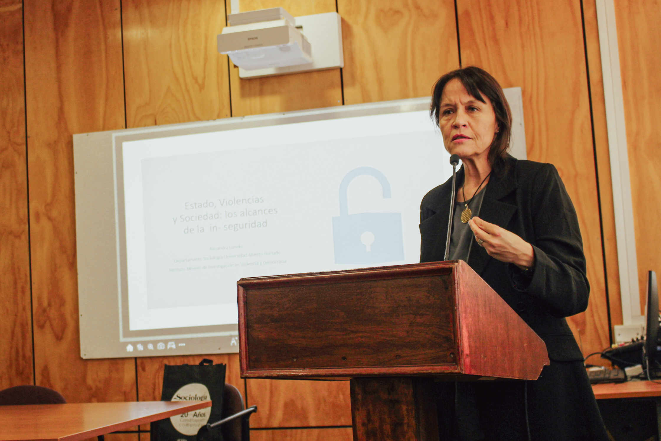 En la oportunidad, la invitada a cargo de dictar la charla fue la doctora en Sociología Alejandra Luneke Reyes, quien también es magíster en Desarrollo Urbano y licenciada en Historia y Ciencias Políticas; académica e investigadora del Departamento de Sociología de la Universidad Alberto Hurtado; directora alterna del Instituto Milenio para la Investigación en Violencia y Democracia (VioDemos); e investigadora del Centro de Desarrollo Urbano Sustentable (CEDEUS), de la Pontificia Universidad Católica y la Universidad de Concepción.