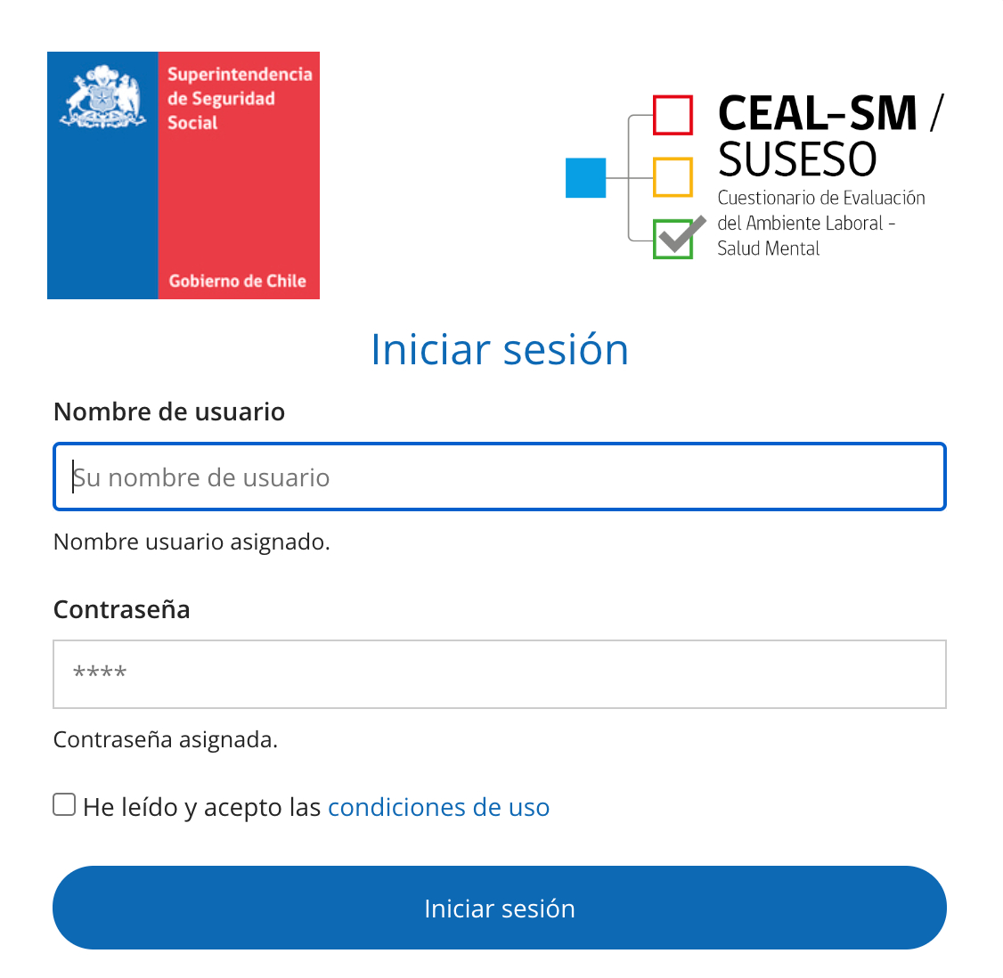 El link de acceso es el siguiente: https://cealsm.suseso.cl/users/sign_in y el respectivo Comité de cada campus le entregará a cada funcionario y funcionaria los datos del usuario y contraseña para responderla.