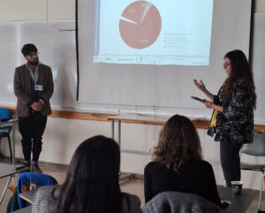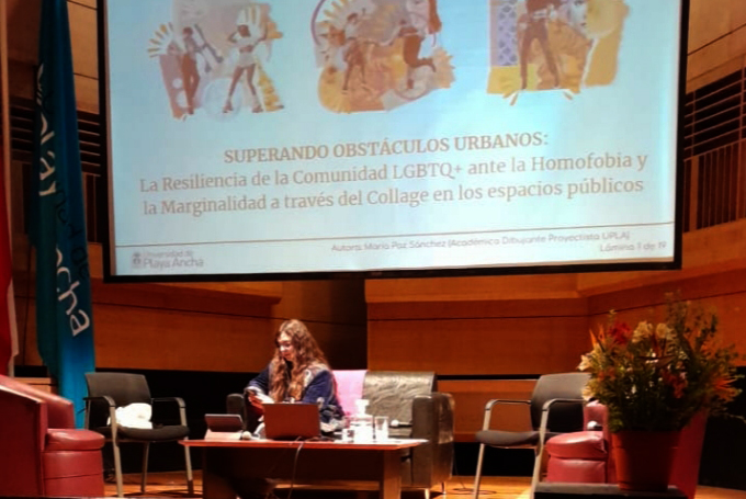 La primera de sus presentaciones la realizó en la II Jornada Anual de Investigadoras “Visibles y en Redes” desarrollada en la Universidad de Playa Ancha, evento donde expuso la ponencia titulada “Superando Obstáculos Urbanos: La resiliencia de la comunidad LGBTQ+ ante la homofobia y marginalidad a través del collage en espacios públicos”.