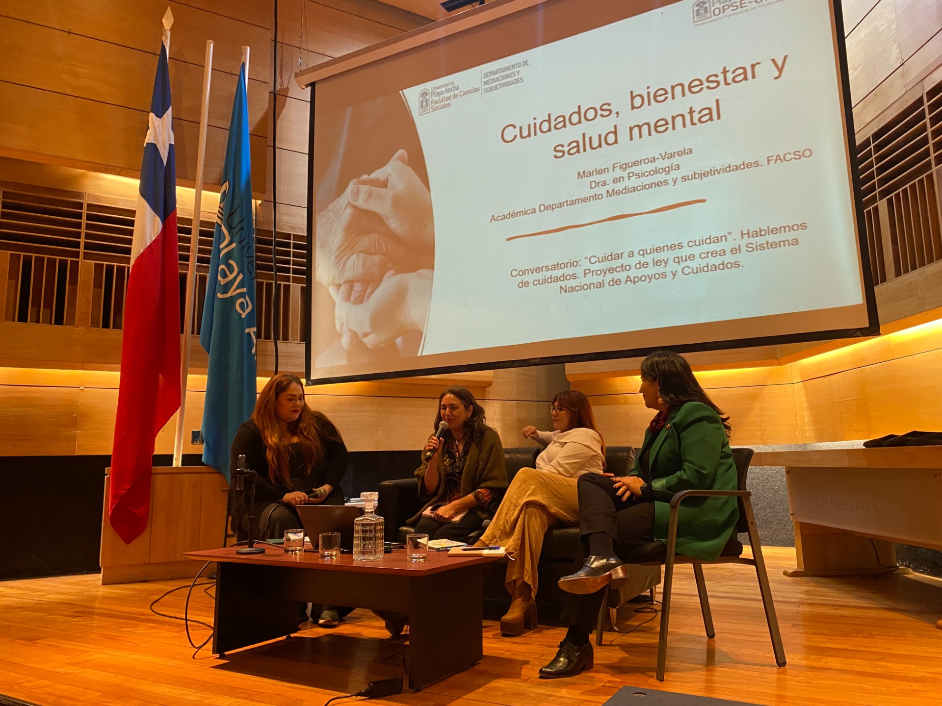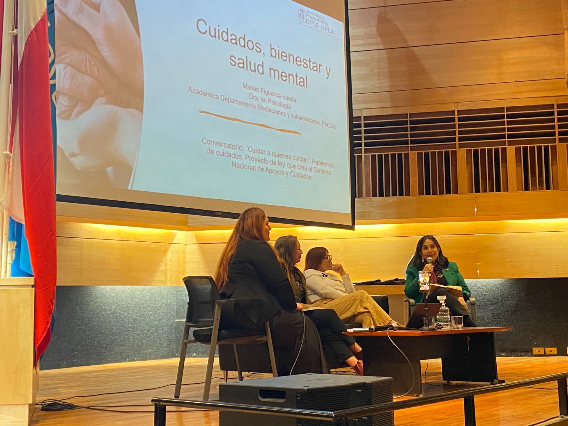 “Sabemos que el sistema de cuidado se constituye, principalmente, de manera informal, es decir, no es remunerado, y que quienes cuidan no han sido formadas ni entrenadas. Eso es relevante porque el no contar con apoyos impacta en el bienestar de las personas cuidadoras. Este rol habitualmente es desempeñado por algún familiar, representando un 94%, y de ese porcentaje el 80% son mujeres”, ejemplificó la coordinadora del OPSE de la UPLA.