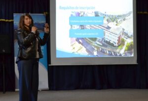 A cargo de la exposición estuvieron las profesionales de la Dirección de Admisión de la universidad, Macarena Sanders Frioli y Yazmín López Díaz, quienes junto a la directora de la unidad, Claudia Valenzuela Mateluna, fueron abordando el funcionamiento de los Propedéuticos, sus principales beneficios, los requisitos de postulación y las fechas importantes a considerar -por ejemplo, el inicio de clases del programa el 30 de mayo-, respondiendo paralelamente las preguntas que surgían participativamente desde los asistentes a la charla.