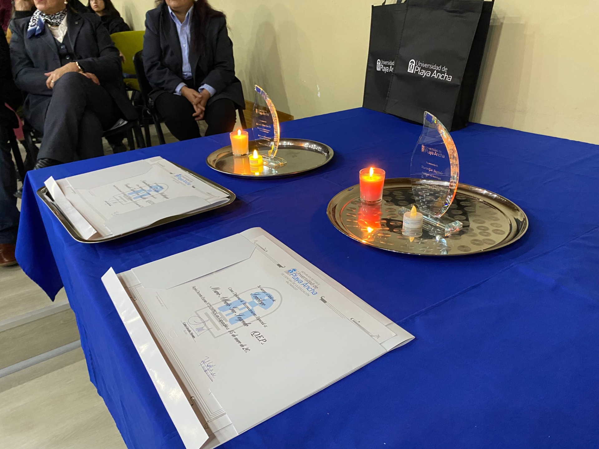 Nos referimos a Consuelo Pérez Castillo (noviembre de 2024) de la carrera de Administración Turística Multilingüe de la Facultad de Humanidades; y a Mario Gac Sagredo (octubre de 2024) de la carrera de Sociología de la Facultad de Ciencias Sociales, cuyas familias recibieron de manos del rector Carlos González Morales el Título póstumo correspondiente a sus respectivos estudios.