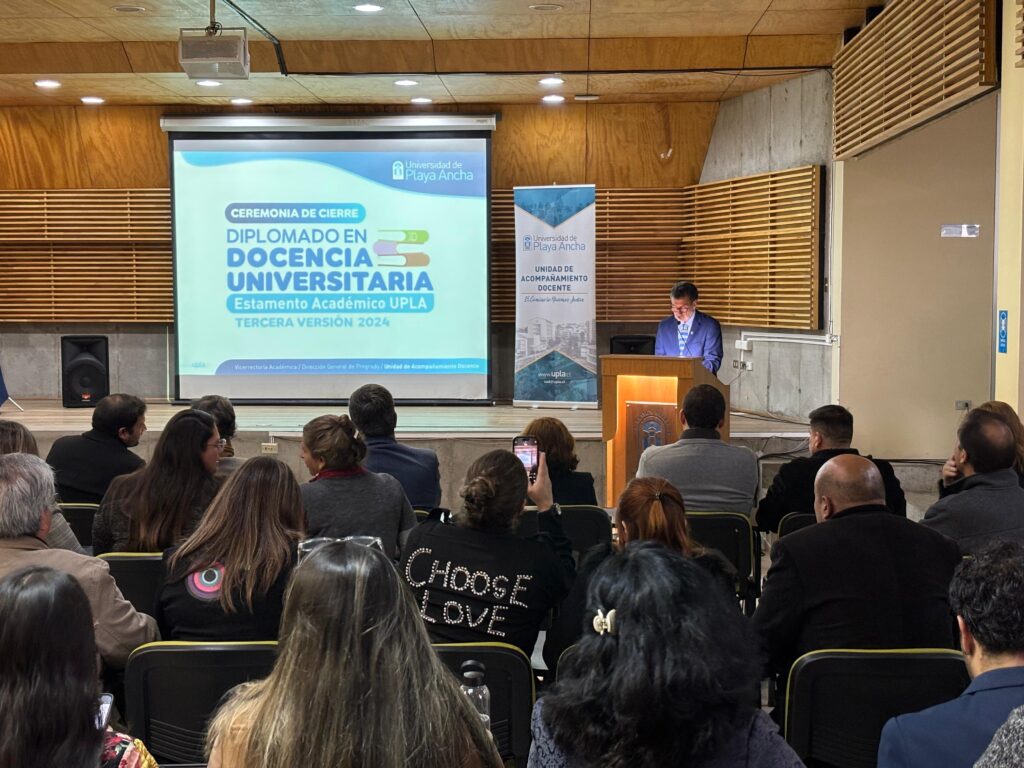 Treinta y cinco académicos y académicas recibieron su certificación de la tercera versión del Diplomado en Docencia Universitaria que impartió la Vicerrectoría Académica de la UPLA, a través de la Unidad de Acompañamiento Docente, UAD.