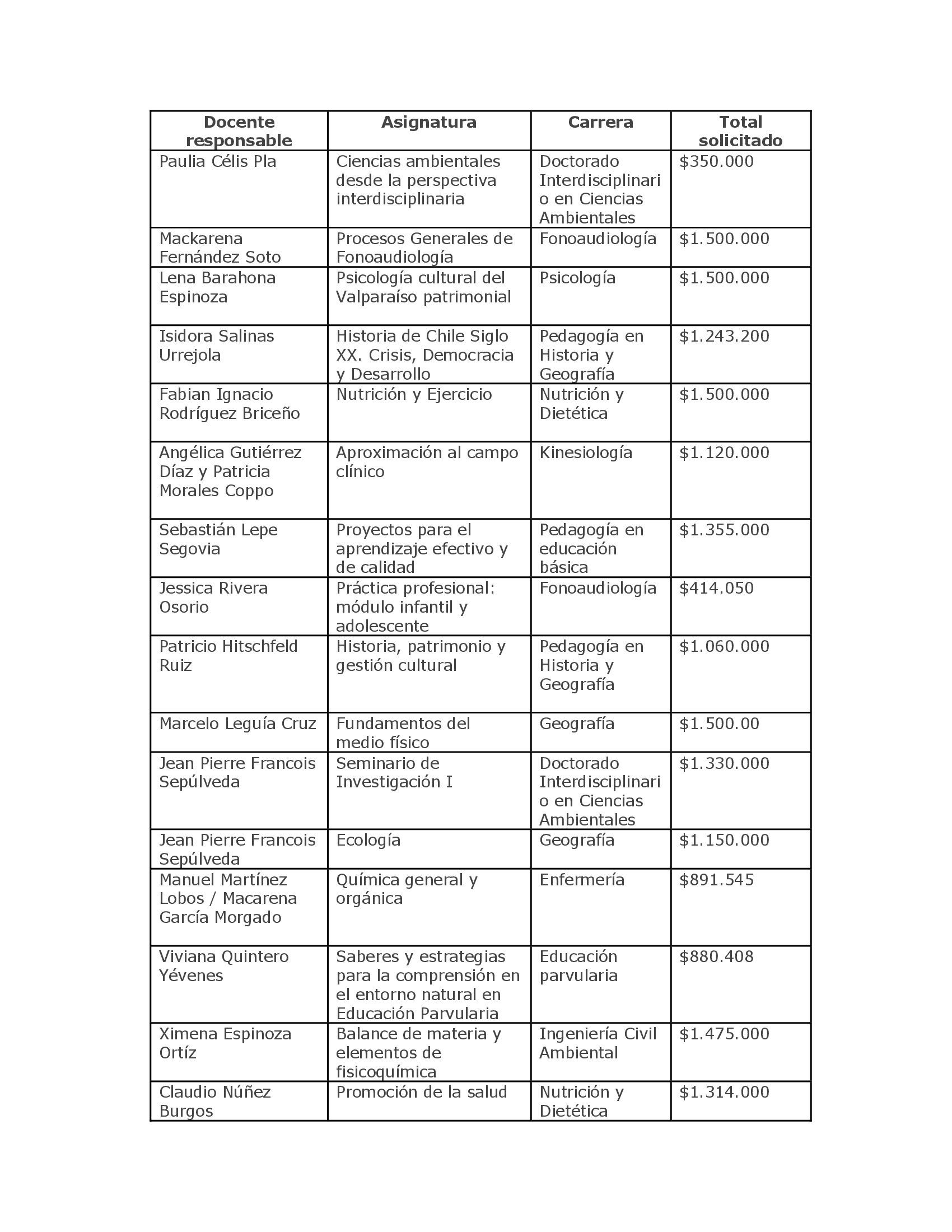 En su primera versión, el Fondo fue adjudicado por 16 iniciativas correspondientes a las facultades de Ciencias Naturales y Exactas, Ingeniería, Ciencias de la Salud, Ciencias Sociales, Ciencias de la Educación y Humanidades.