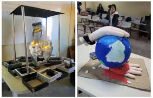 La profesora Julieta Bravo explica que “a partir del estudio de los múltiples lenguajes artísticos, y teniendo en cuenta que el arte tiene como objeto ser un medio de comunicación de los contenidos, es que los estudiantes realizaron una propuesta a partir de la ‘Unidad de problemáticas sociales y juveniles’ del Mineduc en el área de la educación artística. Desarrollaron un mensaje por medio de formas volumétricas y lenguaje espacial, para de este modo cristalizar la idea de que una imagen vale más que mil palabras”.