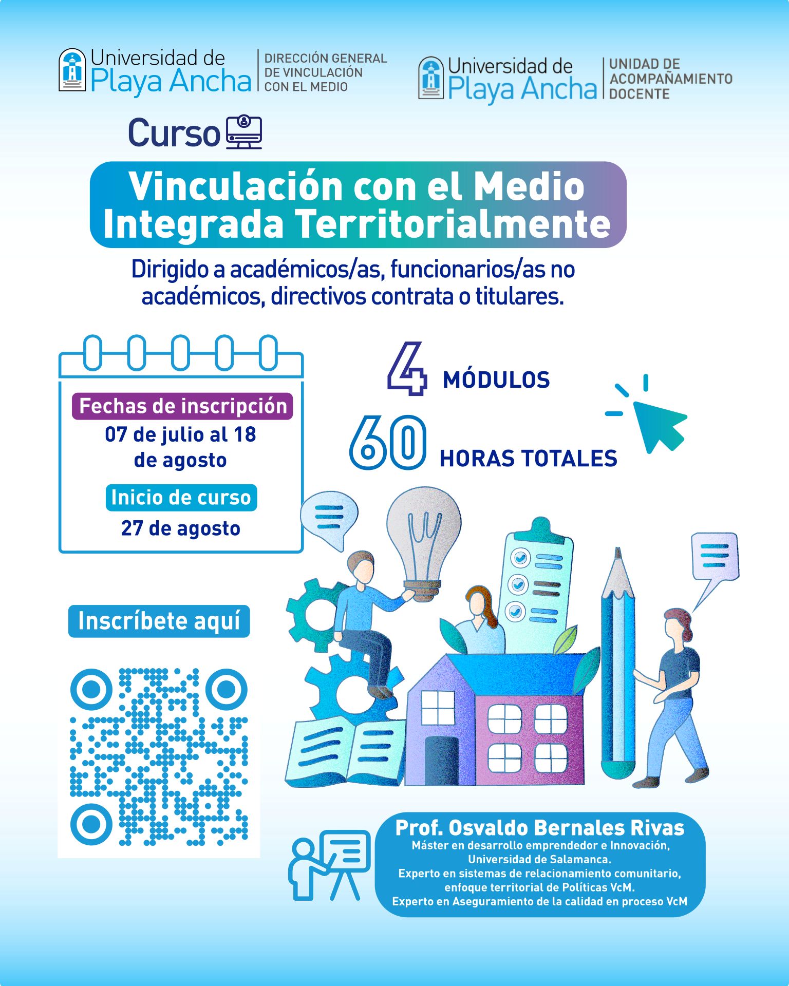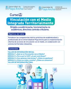 Con el objetivo de fortalecer las competencias teórico-prácticas de académicos/as, funcionarios/as y directivos a contrata o planta de la Universidad de Playa Ancha (UPLA), la Dirección General de Vinculación con el Medio (DGVM), en colaboración con la Unidad de Acompañamiento Docente (UAD), está organizando el primer curso “Vinculación con el Medio Integrada Territorialmente».