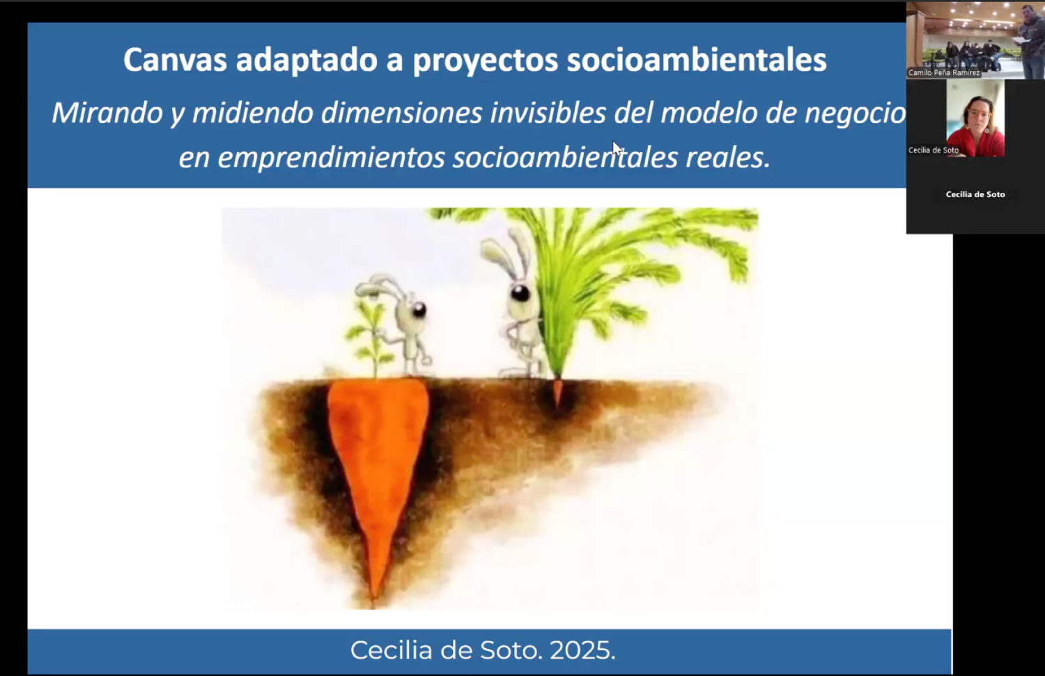 La instancia con la economista Cecilia de Soto Martínez buscó que los y las estudiantes repensaran los modelos de negocio tradicionales mediante el uso del “Canvas Socioambiental”, una herramienta que busca integrar la sostenibilidad ambiental y la viabilidad económica, visibilizando componentes usualmente ignorados en los modelos de emprendimiento.