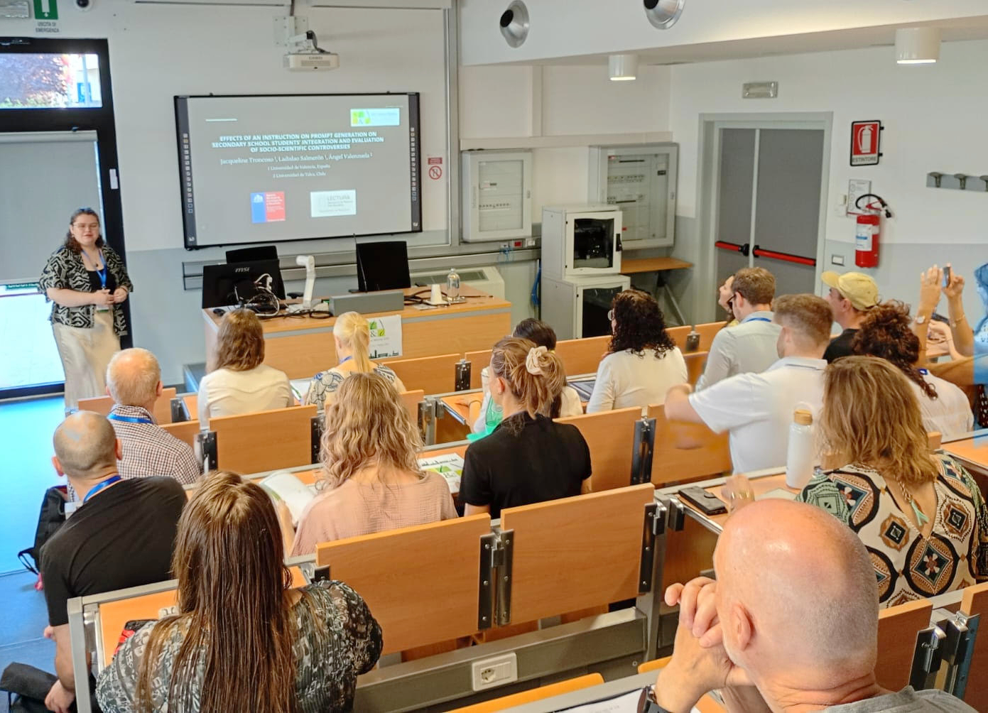 La exposición titulada “Effects of Instruction on Prompt Generation on Secondary School Students’ Integration and Evaluation of Socio-Scientific Controversies”, se basó en el contexto educativo actual, donde las interacciones de los estudiantes con tecnologías como ChatGPT son cada vez más frecuentes.