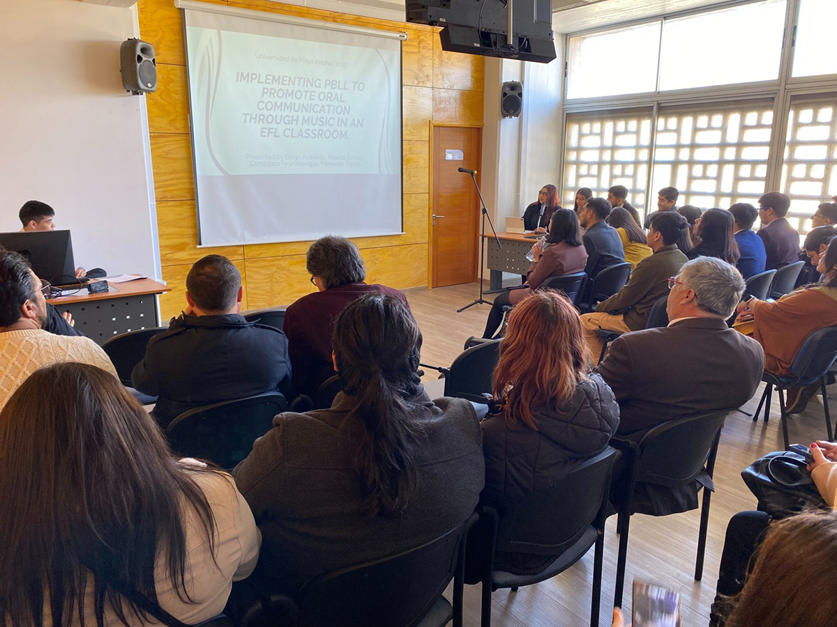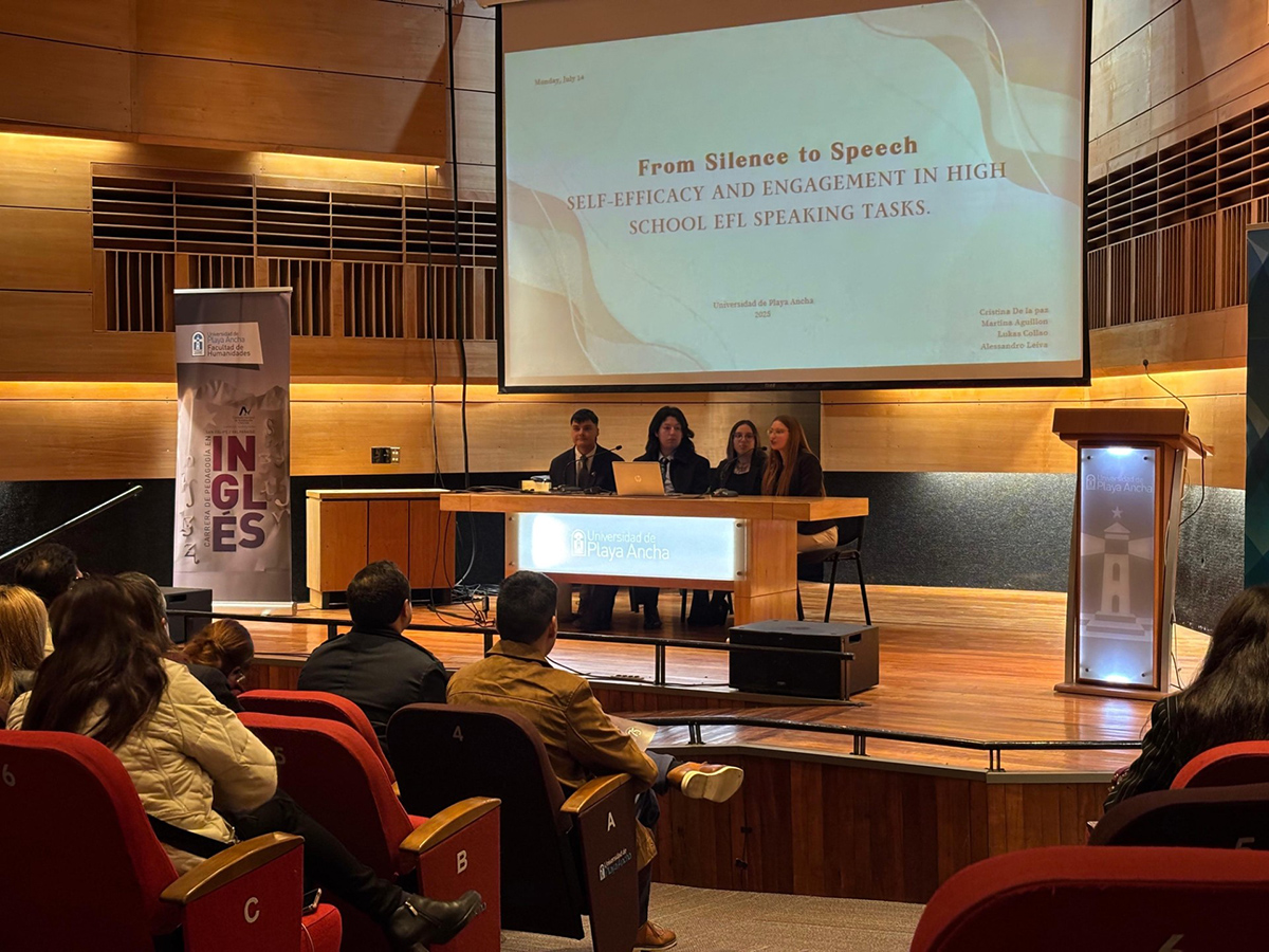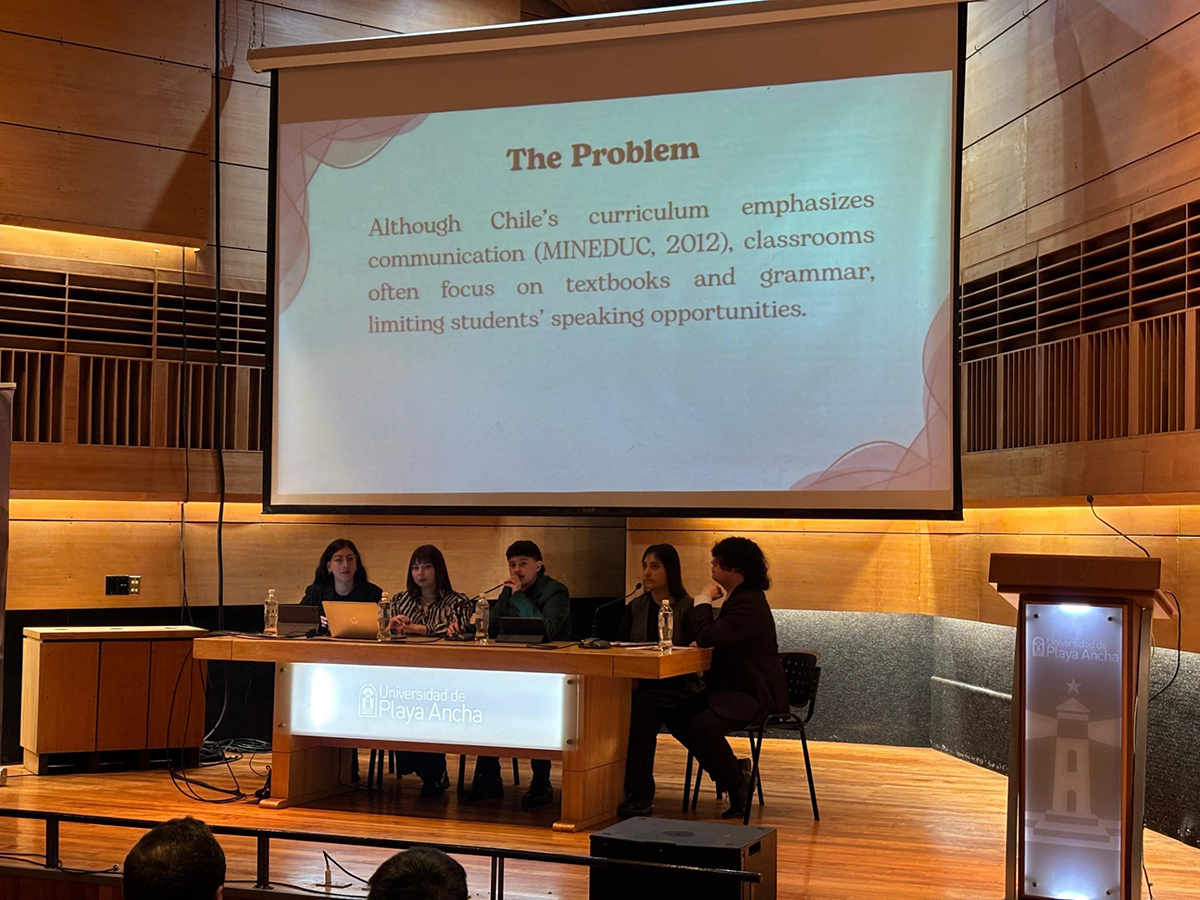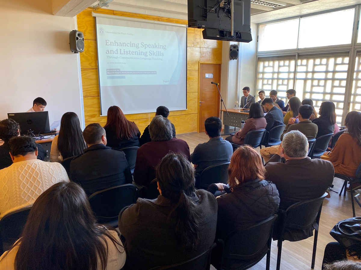 «Implementación de la gamificación en el aula de inglés como lengua extranjera (EFL): Una herramienta para promover la participación, la motivación y el aprendizaje en los estudiantes de sexto grado», a cargo de Isidora Cerda Medina, Tamara Carvajal Pacheco y Mariasofia Urrutia Urrutia; «Del silencio al habla: Autoeficacia y compromiso del alumno en el inglés de secundaria como lengua extranjera (EFL) Tareas de habla», dada a conocer por Martina Aguillón Quiroz, Lukas Collao Latorre, Cristina de la Paz Quezada y Alessandro Leiva Vásquez; «Autenticidad en el diseño de actividades y tareas para promover la motivación y la participación en el habla en inglés como lengua extranjera (EFL)»por Loreto Chacón Núñez, Edison Matus Gómez y Denisse Olivares Sánchez y «Compromiso: un análisis sobre la enseñanza de idiomas basada en tareas (TBLT) y el Diseño Universal para el Aprendizaje (DUA)», presentado por Catalina Díaz Reyes, Benjamín Neira Leiva y Alex Willer Wompner.