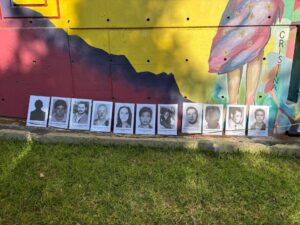 Las y los estudiantes se reunieron en el Patio de la Memoria, ubicado en Casa Central, donde realizaron un reconocimiento a miembros de la institución, que fueron víctimas de la dictadura cívico militar. Conocieron el Memorial de DD.HH., obra realizada por la exdecana de la Facultad de Arte, Lucy Lafuente, así como el mural central, que da cuenta de parte de la historia de Cristina Carreño y Alfredo García, dos jóvenes ejecutados en dictadura por la Operación Cóndor.