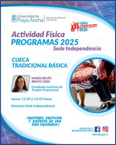 La Dirección de Deportes y Recreación, dependiente de la Dirección General de Desarrollo Estudiantil, invita a la comunidad universitaria de Sede Independencia a participar en el programa «Cueca Tradicional básica».