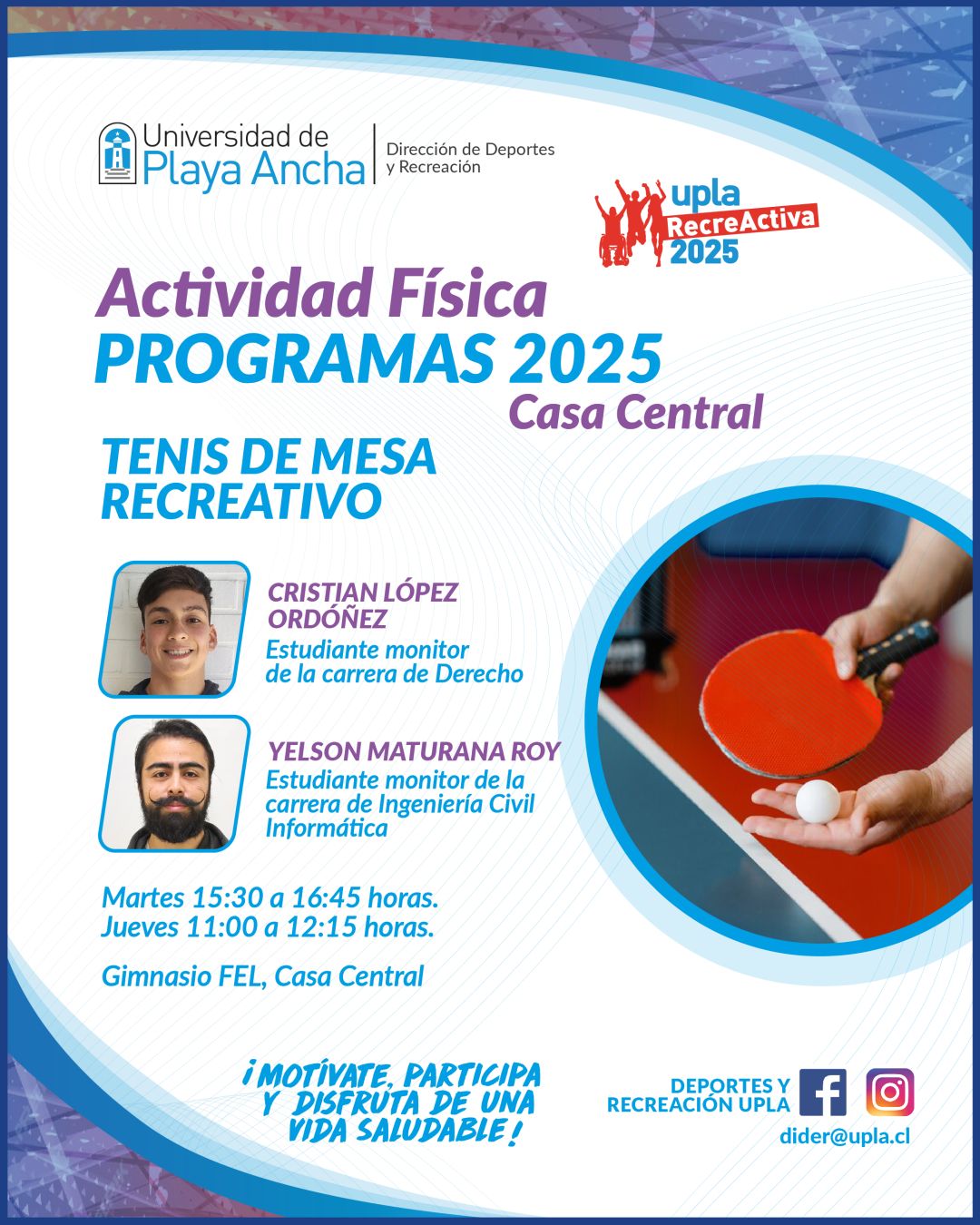 La Dirección de Deportes y Recreación (DIDER), dependiente de la Dirección General de Desarrollo Estudiantil, invita a seguir participando en el programa «Tenis de Mesa Recreativo» en Casa Central.