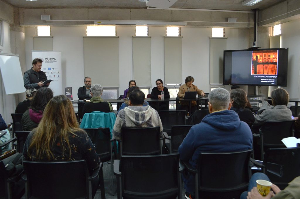 Las reflexiones comenzaron con las presentaciones de Guisela Munita, directora de la carrera de Licenciatura en Arte de la UPLA, y Carolina Sepúlveda, del Servicio Nacional del Patrimonio Cultural, quienes abordaron el tema Revisión de estados, resiliencias de un barrio. A continuación, Paz Undurraga, directora del Centro de Estudios DUC, presentó A buen puerto: plan de regeneración urbano patrimonial integral del Barrio Puerto. Finalmente, el director del Departamento de Artes Integradas de UPLA, José de Nordenflycht, expuso Valparaíso: patrimonio local en contexto global.