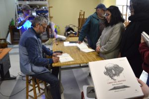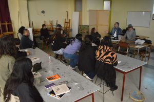 Un diálogo íntimo y cercano fue lo que realizó el artista visual porteño, radicado en Buenos Aires, Luis “Beto” Martínez con estudiantes de las carreras de Licenciatura en Arte y Pedagogía en Artes Visuales de la Facultad de Arte. Esto con el objetivo de socializar el proceso creativo desplegado y lo que significó la generación de su publicación “Libro del Sentido” a partir del ejercicio diario de dos formas de expresión: el dibujo y la poesía.