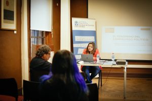 Durante su exposición, Oyarzo (doctorada en Estudios Americanos con mención en Estudios Sociales y Políticos en la Universidad de Santiago de Chile), examinó los retos teóricos y los dilemas metodológicos implicados en el análisis del compromiso político. Y, entre sus líneas de indagación, destacó cómo las identidades de militantes de izquierda se vieron transformadas tras acontecimientos como la derrota de la Unidad Popular (UP), la dictadura militar y el fin de la Guerra Fría. Su exposición hizo especial hincapié en las emociones del compromiso y en los procesos de individuación para explicar por qué muchos activistas y militantes se desvincularon de sus organizaciones políticas, subrayando la necesidad de un diálogo entre sociología e historia política.