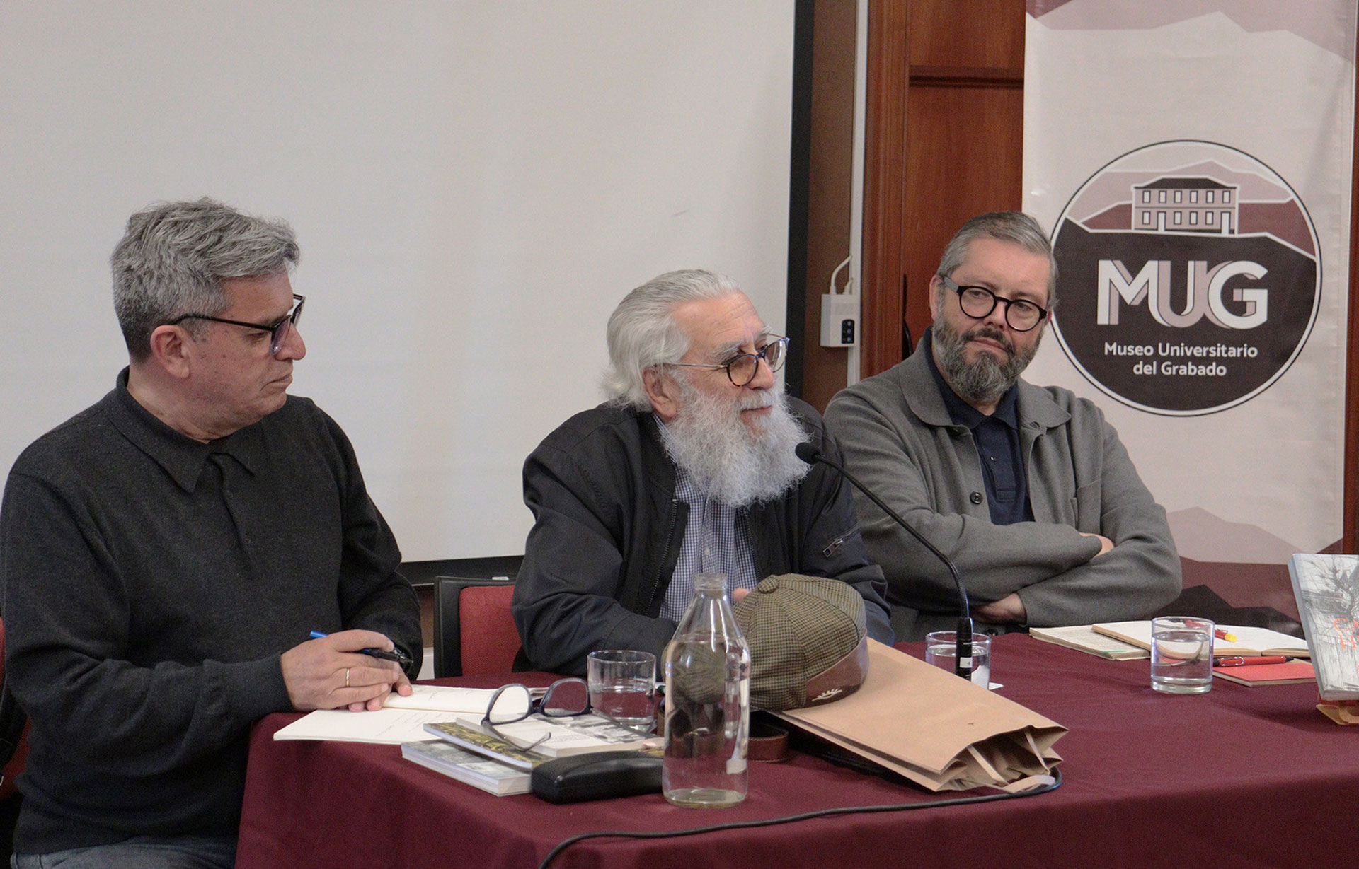 Durante la instancia, también se abarcó la disciplina del grabado, sus prácticas y formación: “Una de las cosas que me parecen importantes es que el grabado es una actividad que se hace grupalmente y tiene que ver con un manejo material, el pelear con el material, por eso quizás es muy común que un escultor se acerque más al grabado que un pintor por ejemplo, pasa mucho eso, porque hay esta cosa material en el trabajo y yo creo que el grabado tiene todavía un futuro enormemente grande, hay mucho aún por hacer”, expresó Rivera Scott.