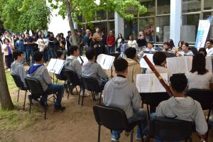 Bajo la dirección de la profesora de percusión Nidia Morgado González, la agrupación compuesta por menores de octavo básico a segundo medio presentó ante estudiantes, funcionarias (os) y cuerpo académico de la Facultad de Arte un repertorio musical de base clásica interpretado por medio de instrumentos de viento, bronce, madera, percusión y cuerdas pulsadas.