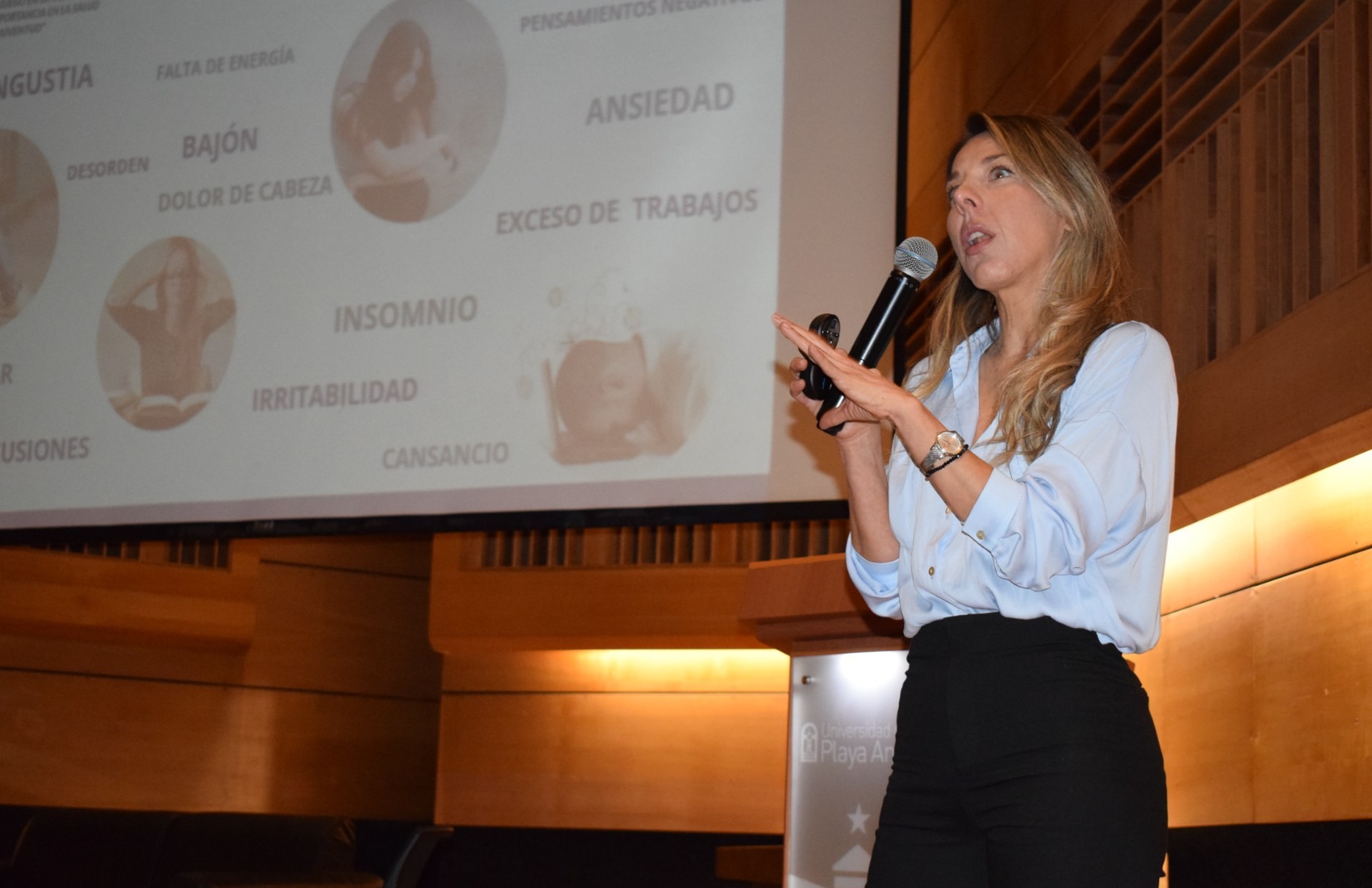 La profesora de Educación Física y especialista en neurociencia, Carla Piazza Olavarría, explicó a los asistentes los beneficios del mindfulness en el autocuidado y salud mental. El mindfulness, expresó, es «la capacidad de poder tener atención plena en presencia desde la observación. Esta especialidad aporta significativamente a la salud mental y al autocuidado, porque ayuda a las personas a reconocer sus emociones, entender sus pensamientos y volver a la calma cada vez que se sienten estresados, ansiosos o se enfrentan a una situación displacentera o dentro del caos».