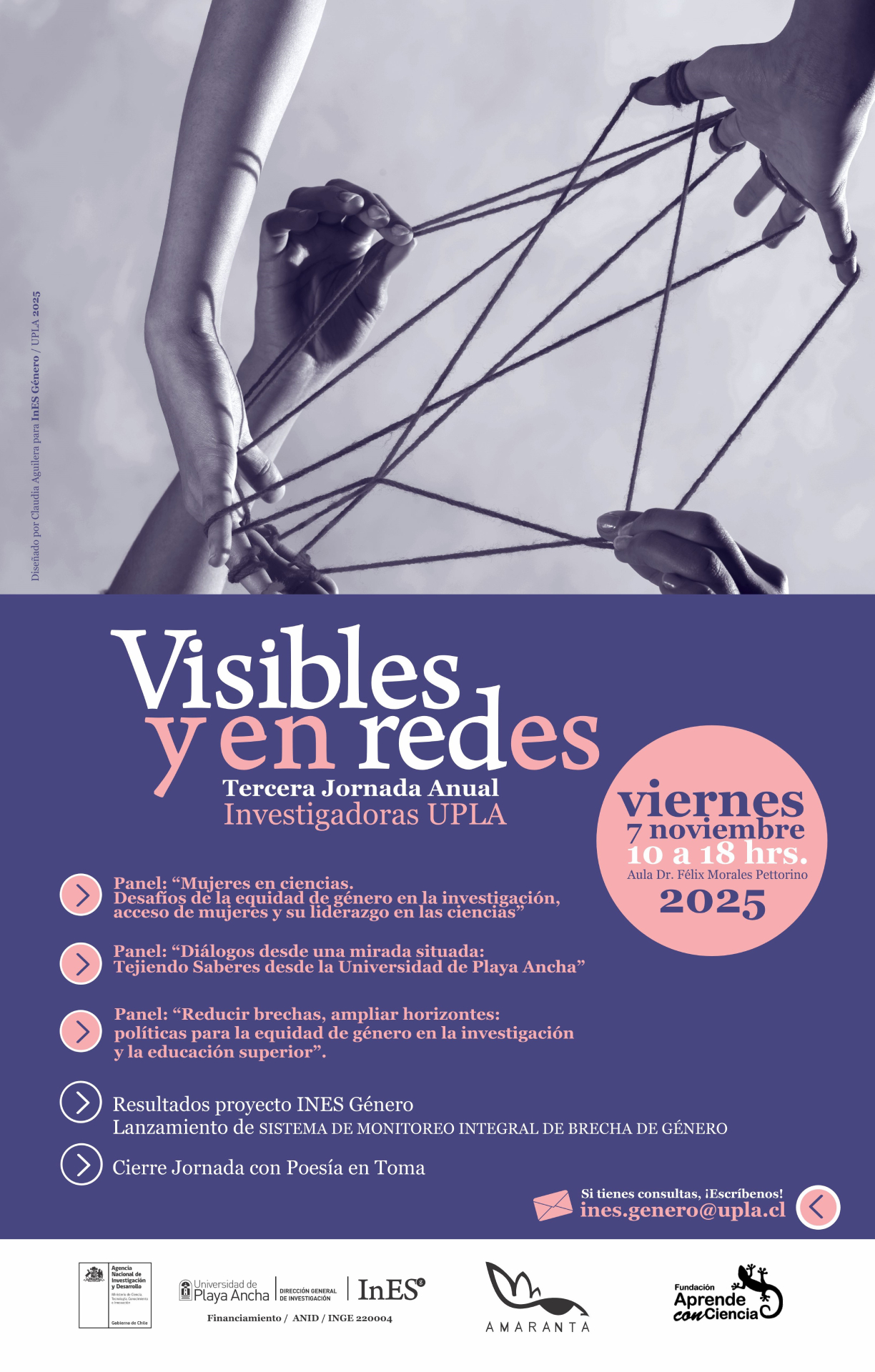 El espacio de reflexión y diálogo, marca además el hito de cierre del proyecto InES Género UPLA (INGE 220004) “Promoción y fortalecimiento institucional de la equidad de género en I+D+i+e en la Universidad de Playa Ancha” financiado por la Agencia Nacional de Investigación y Desarrollo (ANID) que durante sus tres años de ejecución, ha destacado por la implementación de un plan de desarrollo para la instalación de capacidades y herramientas institucionales que disminuyan la brecha en Investigación, Desarrollo, Innovación y Emprendimiento dentro de la Universidad.
